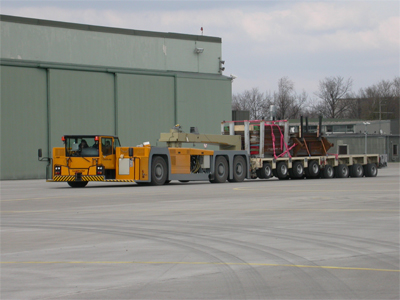 Transport des Flugzeugschleppers mit entsprechenden Konsolen ausgerüstet