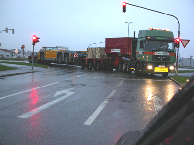eingekuppelt wurde. Der Gesamtzug hat eine Länge von über 30 Metern erreicht, was natürlich entsprechenden Platz beim Abbiegen erforderte. |