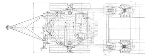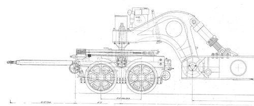 Die Rahmen der Crane 80-Tonner von 1939 waren die ersten Rahmen mit hoher Tragfähigkeit, die komplett in Schweißkonstruktion hergestellt wurden und auch die Rahmen der Crane 120-Tonner wurden geschweißt. (Scammell hatte die Auflieger des 100-Tonners 1929 noch komplett als Niet-Konstruktion gefertigt.) |